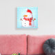 En söt jul snögubbe som är ett slags knubbig och jolly bär en stripe-scarf och en röd julhatt. Festiv och roligt.
