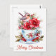 Cute jul Tea Cardinal Blommigt Tekopp Vykort