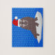 Det här pusslet i fantastisk har en grafisk bild av en söt liten jul-Walrus. Walrus har brunt päls med stort svart ögon och vita betar. Det är sitta på ett isberg mitten i havet och med en röd och vit festiv hatt. Walrus är omgiven av att söt octagonal blue snöflingor faller ner runt hela området.