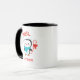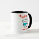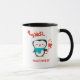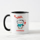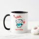 En söt, enkel personlig som penguin jul helgdag mugg. Penguin bär en röd polkamatthatt och en blå halsduk och håller i candy cane. Anpassa den för en gåva eller för dig själv! Designad av Blackberry Boulevard.
