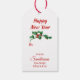 På framsidan av den här märkrn av gåvor i Helgdag finns en bild av en ynklig, brun kanin som håller på att plocka ut en rödstrumpa. Bilden är omgiven av hal, röda bär och poinsettia blomstrar. I texten överst står det "God jul". Baksidan av märkrn har en annan bild av en hollisk rörelse, med text fält i rött som du kan anpassa.