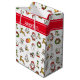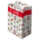 Lägg din gåva i en julklapp i anpassningsbarna. Den här söta väskan är sprinklad med handdragna juldockor. En röd namnskylt ger en möjlighet att anpassa sig för en speciell person.