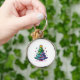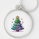 Cute Julgran med färgstarka prydnadsföremål Rund Silverfärgad Nyckelring