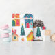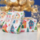 Kute julhus som är så festliga och färgstarka dekorerar denna pappra omslutning. Roligt scener med små festhem i det vita snö, i vintrytor som är sammanblandade med stjärnspetsade dekorerade träd. Vattenfärgen mönster har en vintage ursprung med en retro-beröring, så populär i dag.