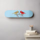 Skateboard i fantastisk har ett söt par nordliga kardinaler. Den manliga fågeln är ljust röd med röd vapensköld på huvudet och den kvinnliga fågeln är en brunaktig gult färg med rött på vingar och svan. Båda fåglarna har en röd näsa. Fåglarna står på ett brunt gren som är täckt av feströda bär och skapar denna vackra julutformning, särskilt för par.