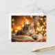En mysigt julfilt framför en kamera. Fireplace blir mjuk med kvällsljus och bakgrunden har en subtil bokeffekt från helgdag. Helgdag vykort
