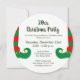 Rundliga inbjudningar till jultomtens Julfest. Anpassningsbar party inbjudan för hem, barn, familj, vänner, företagskontor, affärsmöten eller företagshändelse. Anpassningsbar text och färg i bakgrunden. Cirkelns självskärande form med söt utformning av halva fötter i traditionell röd vit och grönt färg. Enkel mall för att bjuda in vänner, partner, anställda, kolleger, medarbetare, personal, volontärer, chef, chefer, familj. Modern dubbla-sidutskrift med skripttypografi för elegant. Kan också användas för familjeuppsamlingar eller julafton-återföreningar.