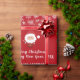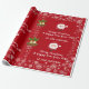 Modern, elegant och söt julomslutning papper, med en tecknad av Jultomten i sin röda hatt och kostym, texten "God jul & Gott nytt år 20XX" i skript för snyggt/kalligrafi-handskrift och en personlig namn. Med sprinkler av vitt och silver snöflingor, och två par av gyllene Julafton klockor med en spiral av holly, på Julafton röd bakgrund. Se till att du anpassar namn och året.