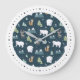Cute Julvinter Animals Mönster Stor Klocka
