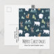 Julens helgdag-vykort med ett visstiskt festivt mönster. Polar björnar, renar, träd. rävar och snöflingor. På en mörk grönt grund.
