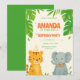 Släng den kutaste djungeltemedda födelsedagsfesten någonsin med den här berömvärda Safari Jungle Birthday-inbjudan - bakgrunden! Med en leende baby-tiger i en party-hatt och en baby-elefant med en bockslips, är denna vattenfärgsdesign i stil inramad med lush grönt tropiska löv och konetti, skapar perfekten för en pojke eller flickas födelsedagsfest. Perfekt till: ・Jungle Safari Birthday Bjud ・Animaliskt-kammade barns Party ・Könsneutralt födelsedag Inbjudan ・Utskrivbara eller digitala Party-mallar Design Högdagrar: ・Hand-målade vattentorkare ・Tropical grönt lövs & play layout ・Mjuk, neutraltens perfekt för att täcka över text