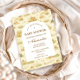 A sweet storybook-style safari design featuring gentle watercolor baby animals including lions, giraffes, and elephants surrounded by soft jungle greenery and a delicate botanical background. The warm neutral palette of cream, honey gold, and soft olive creates a timeless nature-inspired aesthetic, while the elegant arched layout provides a beautiful space for event details.