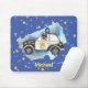 Bilden innehåller en söt K-9-enhet tysk Shepherd-hund inuti en svart och vit polisbil omgiven av moln av olika blå nyanser med många stjärnor som bakgrund på blå färg. Polisen har ett märke på en dörr och gult stjärnor. Denna moderna och förtjusande bild är underbar för vilken liten pojke som helst med släkting i polisen. Det kan hjälpa till att lära dem om tillsatta lagar och hjältinnor. Musknappen är perfekt för använda hemma eller i skolan och gör också en underbar födelsedagspresent i personligen eftersom du kan anpassa den med barnets namn.