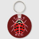En söt, retro kärlek kryp-ladybug med fläckar formade som hjärtan för Alla hjärtans dag eller hela året. Dess rosa ben gör att det framträder på en mörkare bakgrund färg (som du kan anpassa). Den är också tillgänglig med svart ben på lätta plagg. Det är en söt, modern, stiliserad design som ser bra ut i den här nyckelkedjan.