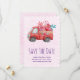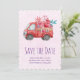 Spara datumkortet med en söt röd vattenfärg lastbil. Bär hjärtan och blommor i ryggen. Jag kärlek u, skriven på sidan. Viktigt och förtjusande.