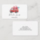 Affärskort med söt röd vattenfärg lastbil. Bär hjärtan och blommor i ryggen. Jag kärlek u, skriven på sidan. Viktigt och förtjusande.