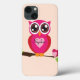 En söt rosa uggla med ett kärlek hjärta på bröstet med anpassade för att anpassa sig med namn mot en ljus rosa bakgrund.