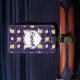 Ett bagagemärke med ett vackert mönster med kattunge astronauter som flyter i rymden. Roligt och viskhet.