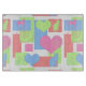 För kattälskaren! En söt mönster av hjärta, snurrar och fyrkanter med söta kattformer i mjuk färg av rosa, grönt och blått med vit bakgrund.