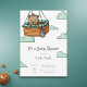 Söt och enkel babyduschinbjudan med en illustration av en liten katt i en luftballong basket som flyter bort. Anpassa texten med din egen. Illustrerad och designad av Patricia Alvarez.