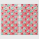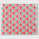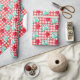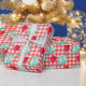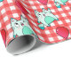 Cute kattunge flyter med röd ballong på röd och vit gingham-bakgrund.