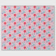 Cute kattunge flyter med röd ballong på rosa och vit polka-punktbakgrund.