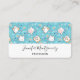 Affärskort med en söt katt mönster, med blå bakgrund och med regnbågar och tass avtryck med mera.