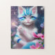 Cute Kawaii baby stripe rosa och blåkattkattunge Pussel