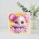 Cute Kawaii Rosa Mouse, den här designen har en akut kawaii rosa mus med lavender-blommor.