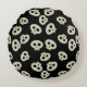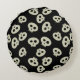 Cute Kawaii Skull Mönster Black Round Pillow Rund Kudde