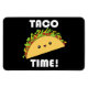 En söt flexi-magnet med en yummy kawaii taco med malet nötkött, sallat, tomater och ost, som leker på en svart bakgrund mellan ord "Taco Time!" i vitt bahaus 93-teckensnitt. En söt gåva till taco älskare, fläkt av japansk popkonst, eller någon som njuter av humoristisk kawaii!