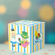 Söt Alice i Wonderland Tema födelsedagsfest favör box för ett barns födelsedag. Den lilla flickan Alice i sin blå klänning och Mad Hatter sitter ovanpå en vacker blå och gult stripe box. Coola cheshire cat and caterpelare på båda sidor av dessa fyrkantiga lådor.