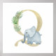 Cute Kids Animal ELEPHANT Monogram Q Nursery Poster