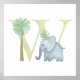 Cute Kids Animal ELEPHANT Monogram W Nursery Poster
