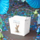 De här söta pappra favoritlådorna med lite bunny på framsidan är perfekt för din pojke födelsedagsfest! Lägg till din barn namn.