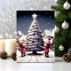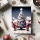 I en by som är täckt av snö, gå in i vintern under. Denna ljuva scen med två små vänner som med glädje dekorerar sitt Julgran med varmt ljus glatt sig mjukt från mysiga hem. Dessa två barn tillför sin helgdag magi och placerar omsorgsfullt prydnadsämnen på träd när snöflingor rör sig runt dem från himmel nattetid. Det här kortet är perfekt för att skicka helgdag till nära och kära. säsongens värme och magi med ett kort som säkert kommer med leenden och omhuldade minnen till alla som får det