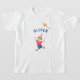 This cute and fun kid's T-shirt features a lovely watercolor illustration of a birthday boy running with a kite, alongside contemporary font in blue, both front and back. Easily change the color of the T-shirt using the editing tool. Variations of this design available in the full collection.