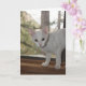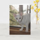 Späd vit kattunge med ett enkelt meddelande. Detta skulle kunna anpassas för ett antal tillfälle.