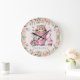 Cute Kitten Cat i Kopp Rosa ros Flowers Stor Klocka