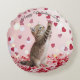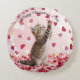Cute Kitten Catching Valentine Heart Petals Rund Kudde