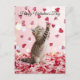 Cute Kitten Catching Valentine Heart Petals Vykort
