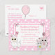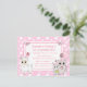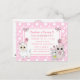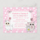 Söt hand plockade tecknad kattunge, mus och lama rosa och vit polka dots är flickans födelsedagsfest inbjudan.