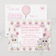 Söta hand plockade tecknad kattunge, muskon och lama rosa cupaka och böjer flickans födelsedagsfest inbjudan.