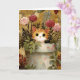 Den berömvärda orange kattungen som kommer från en potterikruka i lush-löv och färgstarka blommor, skapar en konstnärlig och vismisk inställning.