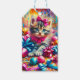 Cute Kitten spelar på födelsedagsstränder Presentetikett