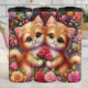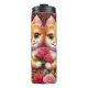 This vibrant digital illustration features two adorable, wide-eyed ginger kittens snuggled together, holding a bouquet of red roses. The artwork is rich with Valentine-inspired detail, including a dense backdrop of pink and yellow roses, colorful hearts, and whimsical floral patterns. The kittens' soft fur and bright green eyes are rendered in high detail, creating a charming and romantic aesthetic. This seamless-style graphic is designed as a full-wrap for insulated tumblers, offering a high-impact, colorful 360-degree design. The colorful palette and sweet subject matter make it an ideal gift for cat lovers and Valentine Day celebrations.