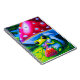 Cute knubbig groda som äter en jordgubbsbärbar dat anteckningsbok