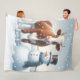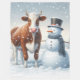 Cute ko & snögubbe på vintern fält fleecefilt