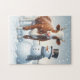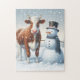 Cute ko & snögubbe på vintern fält pussel