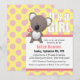 För en dusch i flicka har den här söta designen en söt koala-björn och rosa polka dots under en gult. Du kan ändra gultens bakgrund till valfri färg genom att klicka på knappen "Anpassa" och välja en annan bakgrund färg. Lägg till duschinformationen genom att ersätta exempeltexten som visas i designmallen. Hämta ett passande klistermärke för party favors här: